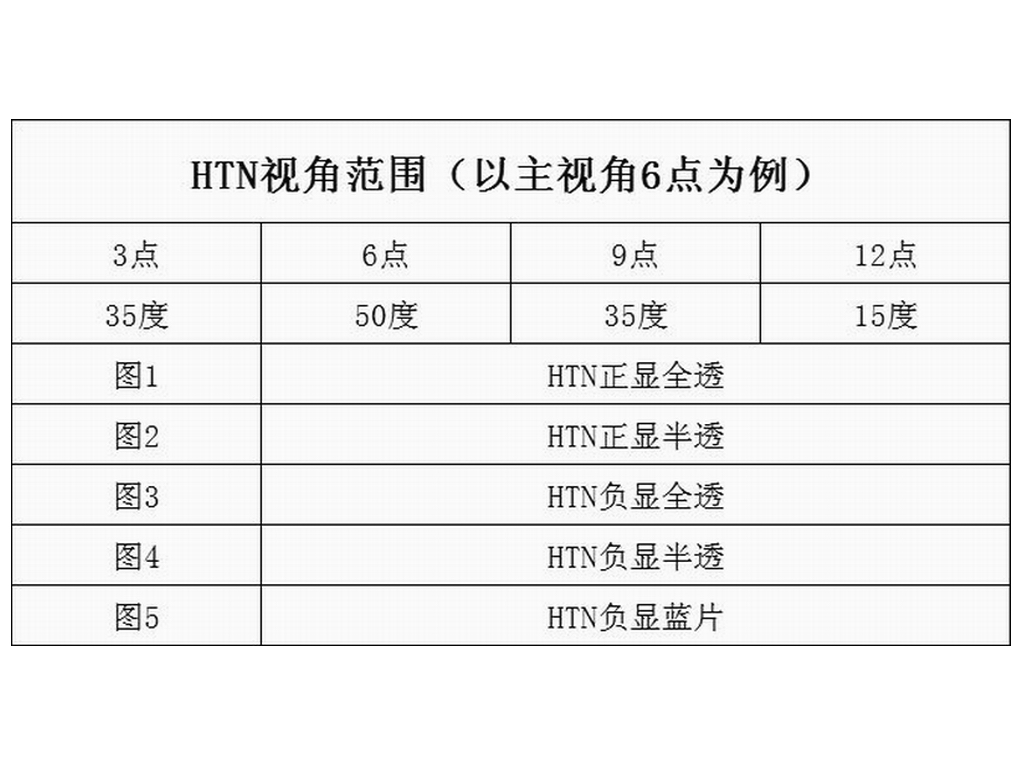 8;特性:HTN顯示比TN顯示視角范圍要寬一些,可調(diào)電壓范圍也比TN顯示寬,價(jià)格也比TN顯示略高。適用于要求稍高TN顯示無(wú)法滿(mǎn)足,但是價(jià)格又不能比TN顯示相差太大的電子產(chǎn)品上。HTN正顯為白底黑字,字體帶少少泛白,HTN負(fù)顯為藍(lán)底白字,藍(lán)色帶點(diǎn)紫紅色。